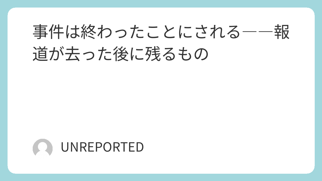事件は終わったことにされる――報道が去った後に残るもの